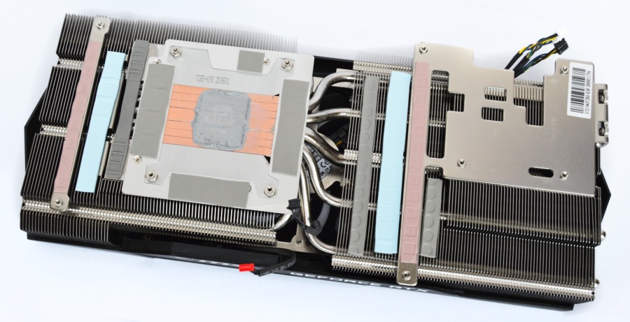 Конструкция основного охладителя у MSI RTX 3090 Gaming и MSI RTX 3080 Gaming одинакова. Это массивный радиатор с тепловыми трубками, который охлаждает не только процессор и память, но и все компоненты узла питания, для чего предусмотрено множество контактных площадок и термопрокладок.