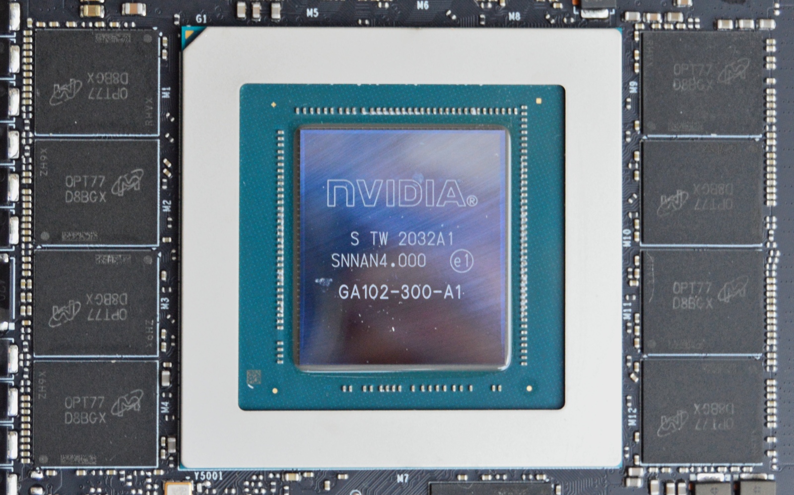 24 ГБ памяти GDDR6X набрано микросхемами Micron с маркировкой OPT77 D8BGX. Полная маркировка графического процессора: GA102-300-A1. Он оперирует 10496 потоковыми ядрами CUDA, разрядность шины памяти составляет 384 бит.