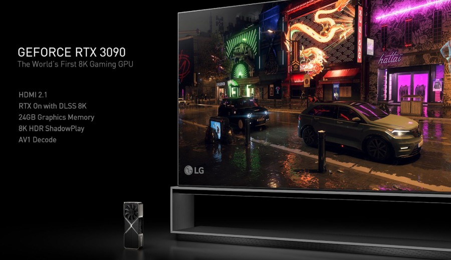 Надо отметить, что c выходом GeForce RTX 3090 компания NVIDIA начинает делать акцент на разрешении 8K. Это касается как видеоконтента, так и игрового потенциала видеокарты. Мы уже писали, что GeForce RTX новой серии впервые предлагают аппаратное ускорение декодирования и кодирования видео в формате 8K, включая новый стандарт AV1. Вы сможете комфортно смотреть фильмы 8K при 60 кадрах с минимальной загрузкой CPU и сможете записывать свое прохождение игр или вести стримы в 8K.