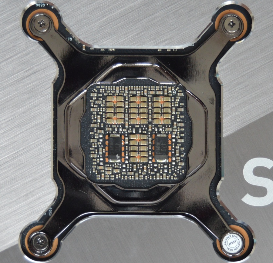Suprim использует единый радиатор для всех элементов на плате. Снизу предусмотрено множество площадок для отвода тепла от микросхем памяти, транзисторных сборок, дросселей и прочих элементов. Все элементы основания выполнены из никелированной меди.