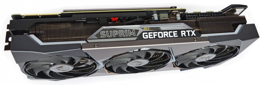 Основной радиатор GeForce RTX 3090 Suprim X 24G идентичен радиатору GeForce RTX 3080 Suprim X 10G. Разница в улучшенном бэкплейте с тепловыми трубками.