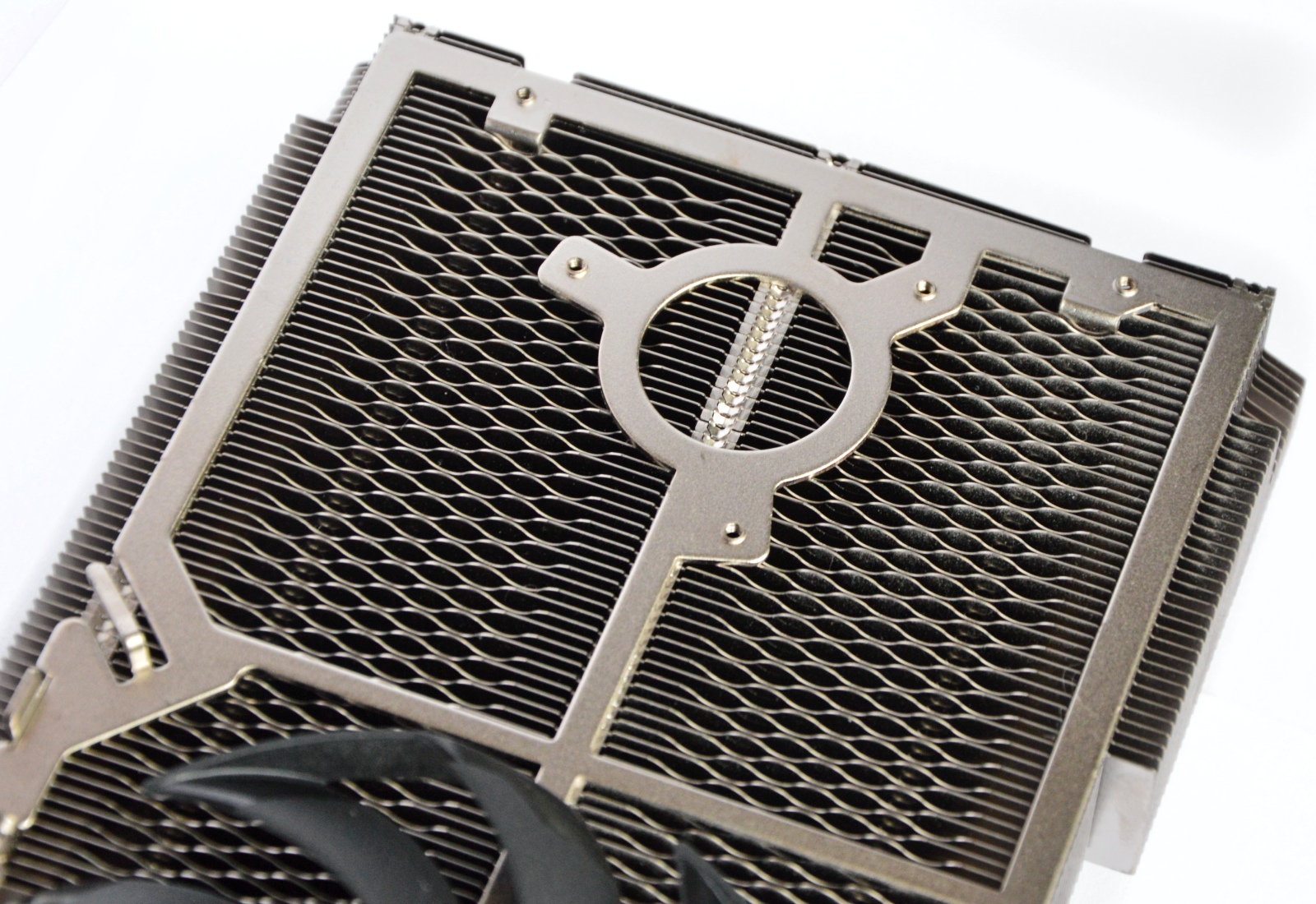 Радиатор пронизан семью тепловыми трубками. В основании они спрессованы и плотно подогнаны друг к другу благодаря прямоугольной форме.