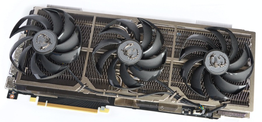 Поря взглянуть на систему охлаждения. Интересно сравнить конструкцию охладителя с кулером MSI GeForce RTX 3090 Gaming X, а различия должны быть, ведь при схожих размерах Suprim весит на 340 грамм больше.