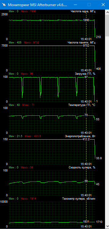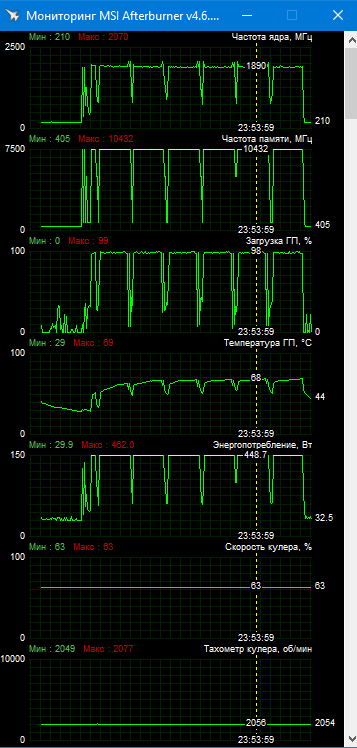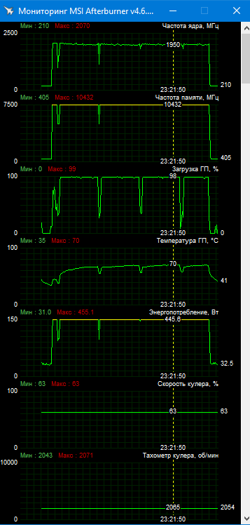 В большинстве игр Boost держался в рамках 2070–1935 МГц. И даже в The Division 2 частота ядра не попускалась ниже 1890–1900 МГц.