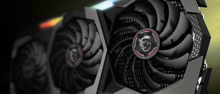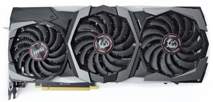 Перед нами предстает «монстр» крупных размеров с тремя вентиляторами. Во внешнем оформлении выдержан узнаваемый дизайн MSI Gaming с футуристическими резкими очертаниями кожуха.