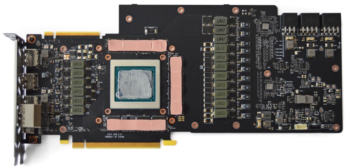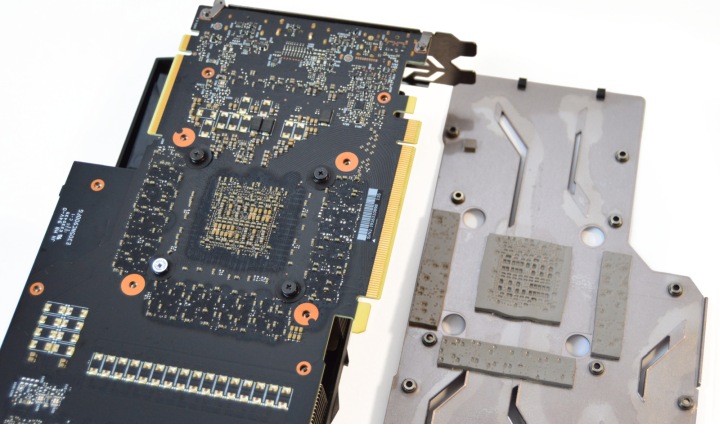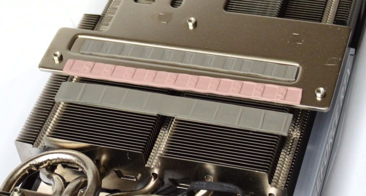 Усилительная пластина является радиатором, отводя тепло от горячего текстолита через специальные прокладки в зоне GPU и микросхемами памяти.