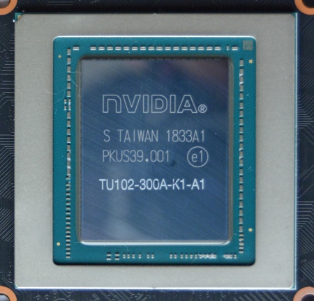 В основе видеокарты лежит графический процессор TU102-300A-K1-A1 с 4352 потоковыми процессорами CUDA.