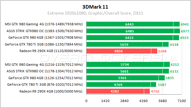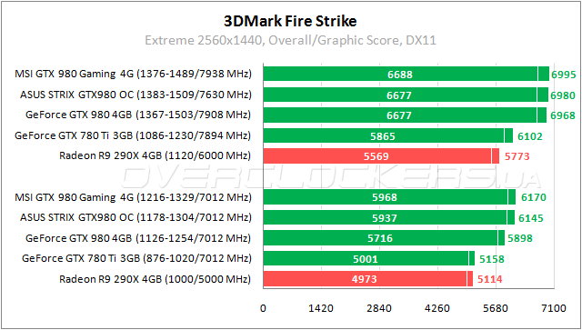 Референсный видеоадаптер GeForce GTX 980 немного уступает GeForce GTX 780 Ti, новый Gaming идет со старичком наравне. Radeon R9 290X слабее на 9–11%.