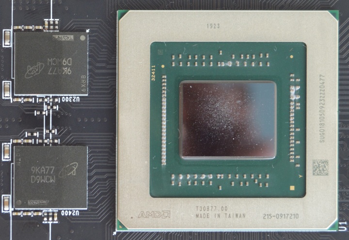 Восемь гигабайт памяти набрано микросхемами Micron 9KA77 D9WCW. Графический чип Navi 10 в Radeon RX 5700 XT оперирует всеми вычислительными блоками, а это 2560 потоковых процессоров.