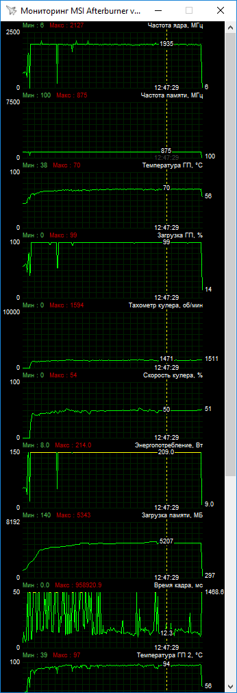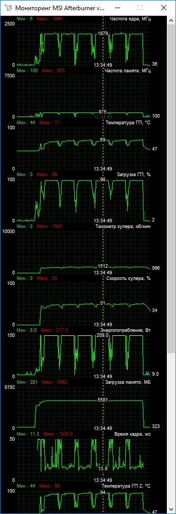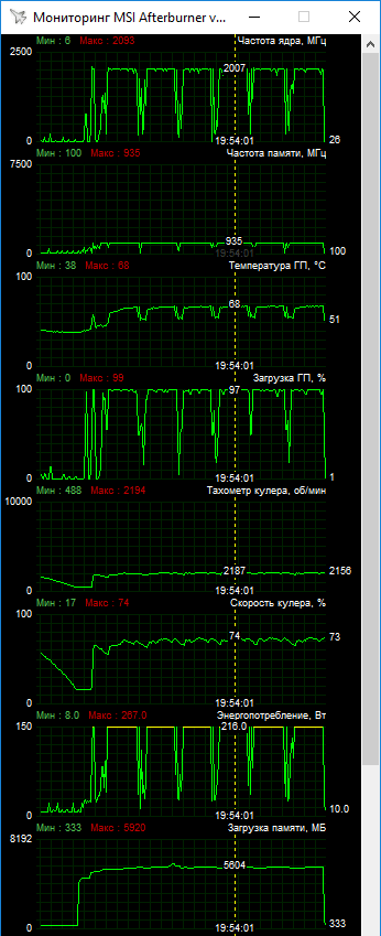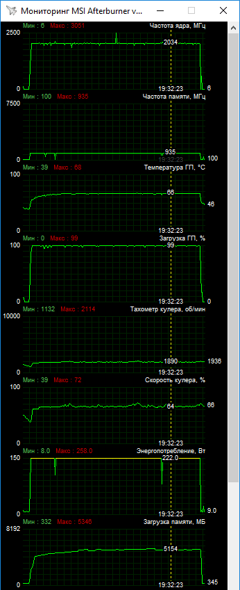 Нужно дать небольшое пояснение по максимальному Boost. Во вкладке Wattman конечная точка Boost установлена на привычном значении в 2024 МГц, как и у референса. При этом MSI Afterburner показывает более высокие пиковые значения, что вероятно связано с ошибкой мониторинга.
