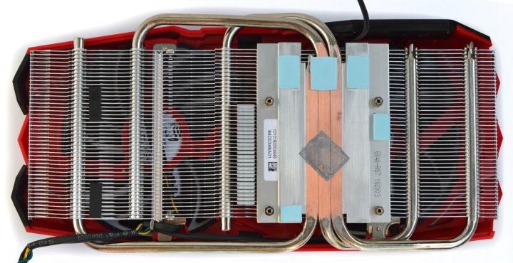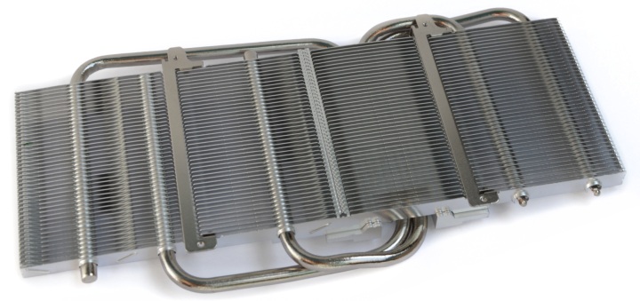 Полная длина видеокарты 27 см. Система охлаждения занимает два слота. Кулер использует радиатор с тепловыми трубками и два крупных вентилятора.