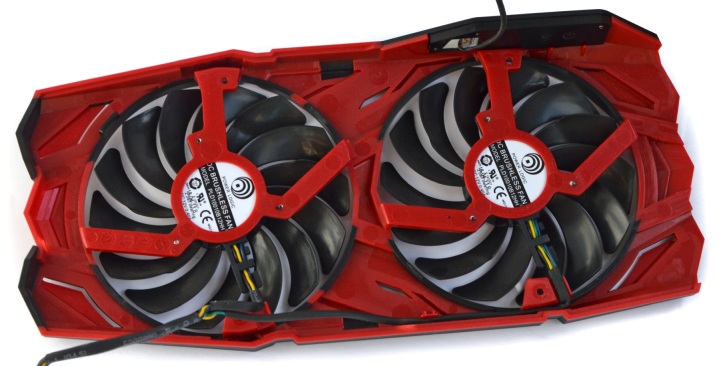 При тестировании на открытом стенде 14-минутный непрерывный тест Final Fantasy XV прогрел видеокарту лишь до 72 °С (в помещении 25 °С). При этом средняя скорость вращения вентиляторов была на уровне 1200 об/мин при пиковых значениях до 1400 об/мин. Шум минимальный. Частота ядра стабильно держалась на уровне 1380 МГц без отклонений в меньшую сторону, что бывает на простых видеокартах серии Radeon RX 580.