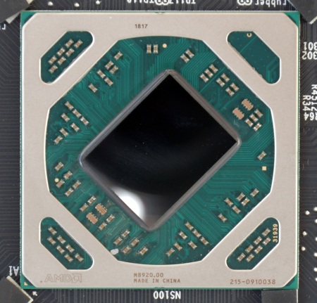 Сердцем видеокарты является процессор Polaris 20 с 2304 потоковыми процессорами. Кристалл окружен массивной защитной рамкой.