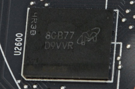 Восемь гигабайт памяти набрано микросхемами Micron с маркировкой 8GB77 D9VVR.