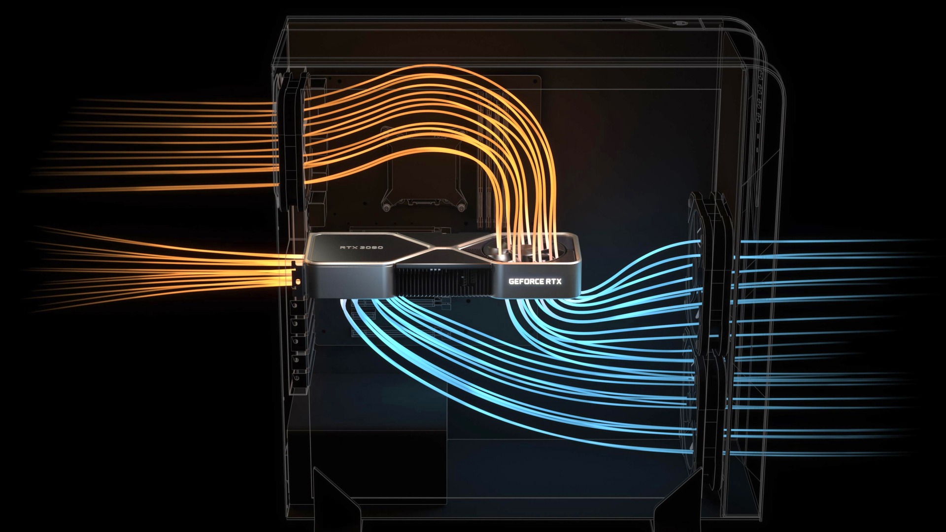 Кулер референсной GeForce RTX 3090 занимает три слота расширения, остальные карты ограничены двухслотовым форматом. GeForce RTX 3070 меньше в размерах и предполагает одностороннее расположение вентиляторов.