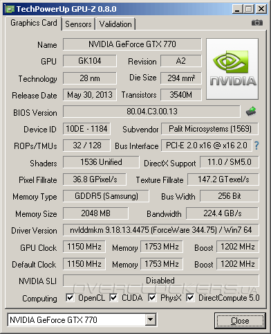 Но на данный момент времени GeForce GTX 770 и Radeon R9 280X — весьма актуальные решения. Поэтому кроме стандартного вопроса соотношения производительности сохраняет актуальность и вопрос выбора среди конкретных моделей с разным охлаждением. Честь NVIDIA в данном материале будет защищать видеокарта Palit GeForce GTX 770 JetStream (NE5X770H1042-1045J), ранее не фигурировавшая на страницах сайта. Поэтому будет проведен полноценный обзор с изучением ее особенностей.