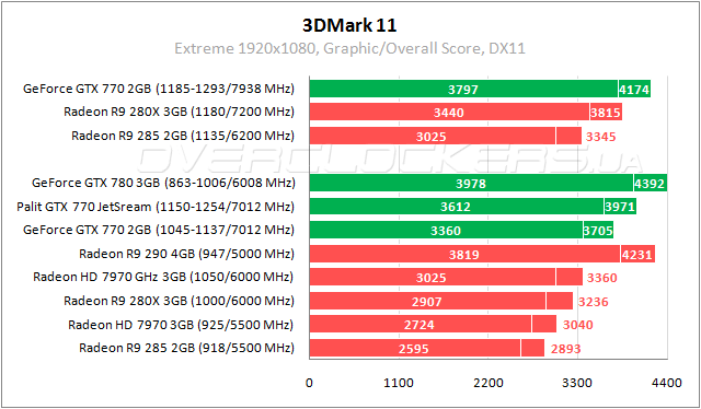 У GeForce GTX 770 средняя позиция между Radeon HD 7970 GHz Edition и Radeon R9 290. Palit на 8% лучше собрата и на 10% слабее старшего GeForce GTX 780.