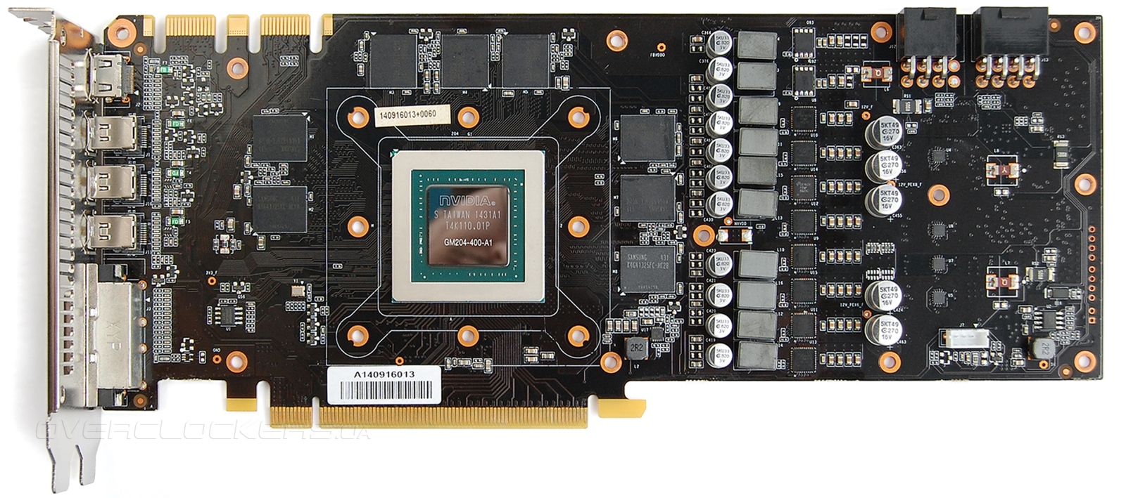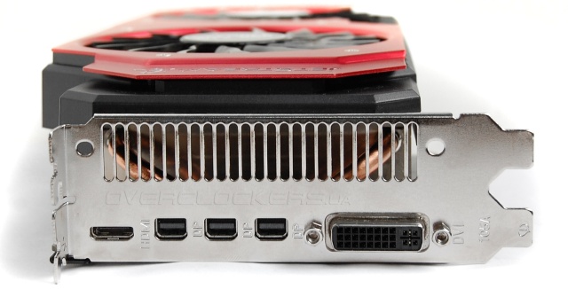 Набор интерфейсных разъемов соответствует стандартной конфигурации GeForce GTX 980 из трех DisplayPort, одного HDMI и одного DVI, но первые реализованы мини-варианте. Это может вызвать неудобство и потребует искать переходник с mini-DisplayPort на полноразмерный DisplayPort. С подключением по DVI никаких вопросов не возникнет.