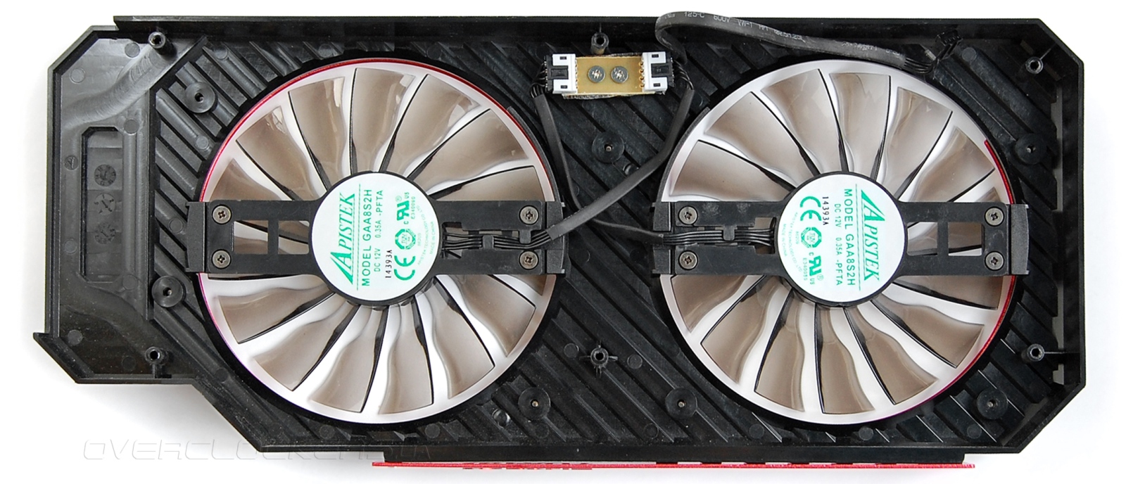 Большая часть черного кожуха накрыта красной декоративной пластиной, которая придает более броский внешний вид. Сам красный цвет ассоциируется с продукцией AMD, но в последнее время и многие другие производители используют такое сочетание цветов во внешнем дизайне своих GeForce.