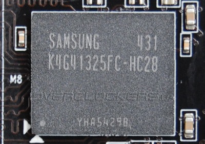 Четыре гигабайта памяти набраны восемью микросхемами Samsung K4G41325FC-HC28.