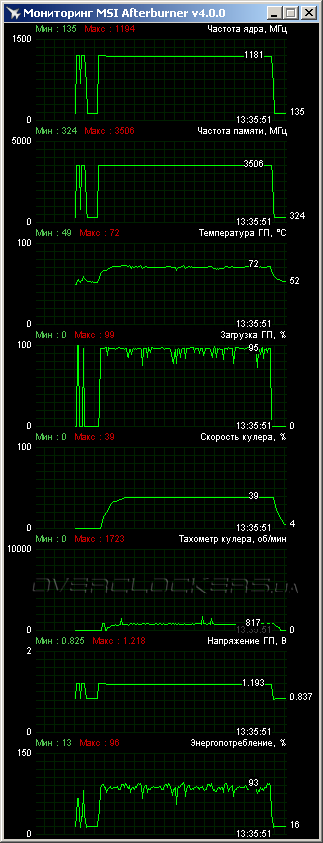 Исключение сделано лишь для 3DMark. Данный тест и наш референс прогревал слабо, отчего он работал на частотах Boost, близких к максимуму. В данном случае на максимум в 1256 МГц мы карту не ставили, но повышали частоты для этого теста до уровня 1220 МГц в пике.