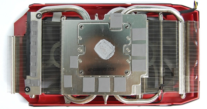 Под кожухом скрывается массивный радиатор с толстыми тепловыми трубками.