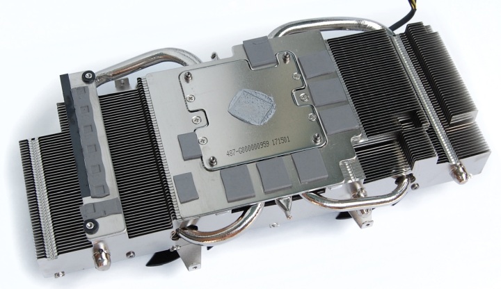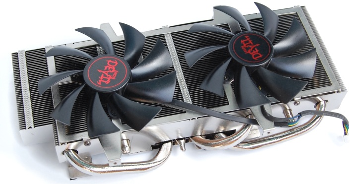 Тепло рассеивает массивный пластинчатый радиатор, который пронизывают тепловые трубки. Сверху монтируется два вентилятора типоразмера 100 мм.