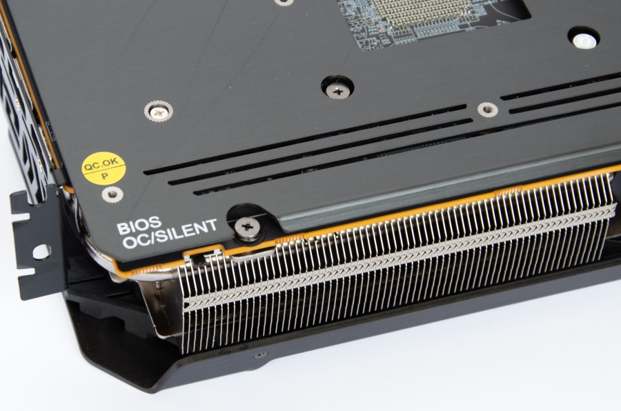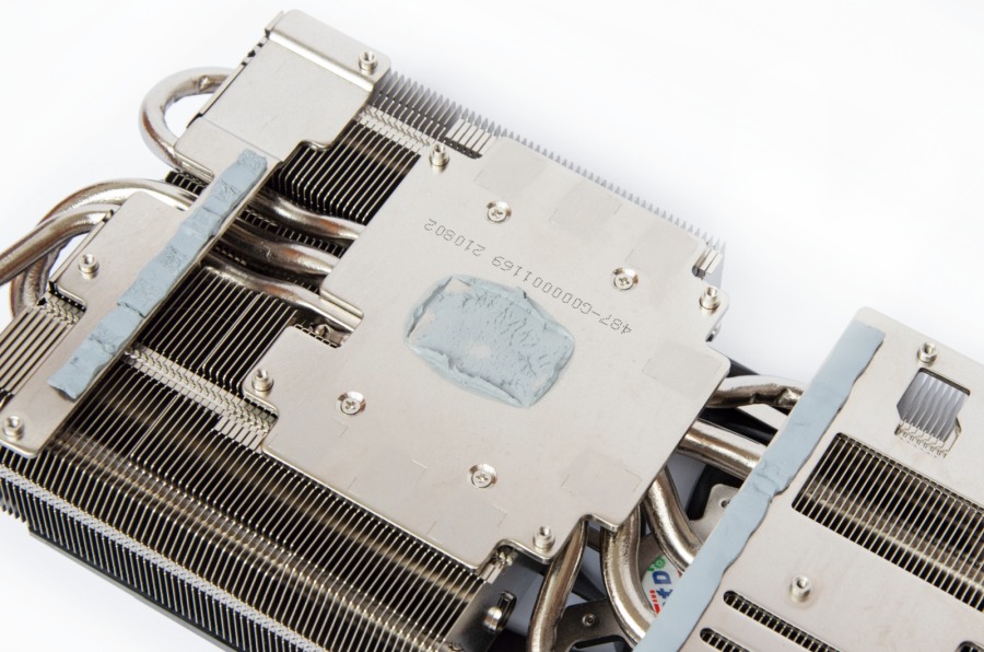 Большое основание отводит тепло от GPU и микросхем памяти. Стоит отметить высокое качество обработки и ровную поверхность этого основания и всех площадок на радиаторе.