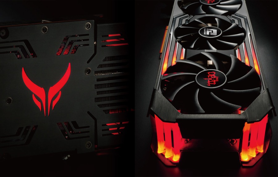 Как и положено топовому продукту, PowerColor Red Devil RX 6900 XT Ultimate оснащен RGB-подсветкой. Подсвечиваемые вставки в задней части корпуса и логотип создают яркую красную иллюминацию внутри корпуса.