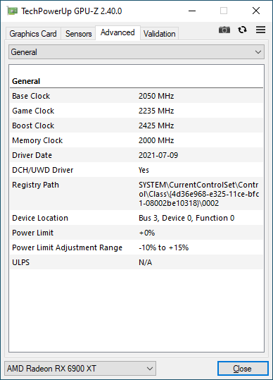 PowerColor Red Devil RX 6900 XT Ultimate работает на повышенных частотах. Базовая частота увеличена с 1825 до 2050 МГц, Game Clock повышен с 2015 до 2235 МГц, а Boost Clock с 2250 до 2425 МГц. Частота обмена данных у памяти GDDR6 на стандартном уровне в 16000 МГц.