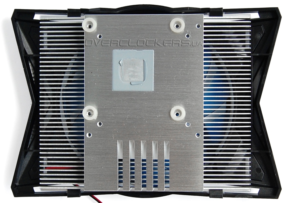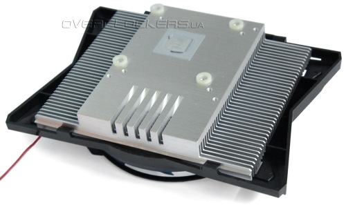 Сам кулер нам хорошо знаком. Аналогичный по конструкции радиатор мы видели и у GeForce GT 240 и у самых разных бюджетных Radeon. Но в данном случае он оснащен крупным 90-мм вентилятором.