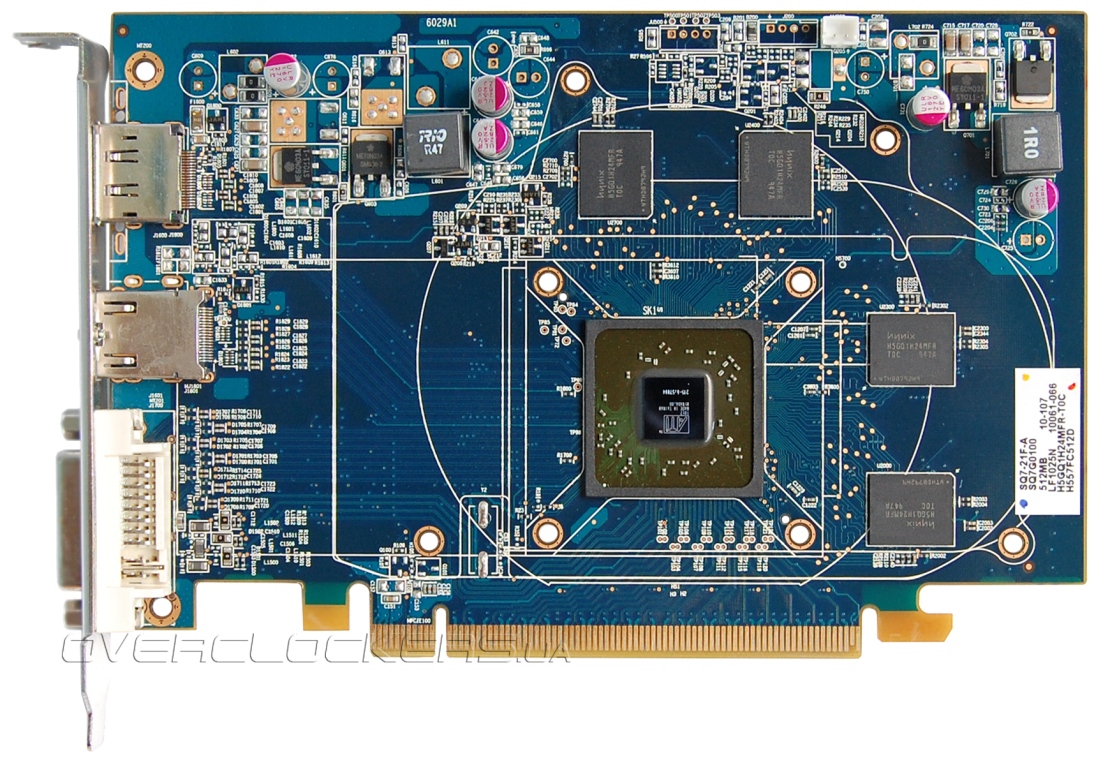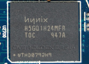 На борту у HIS всего 512 МБ видеопамяти — это четыре микросхемы Hynix H5GQ1H24MFR T0C.