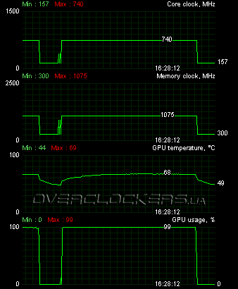 С учетом высоких частот старших Radeon HD 5600 можно надеяться на хороший разгон Redwood и у младшей модели. И в этом плане HIS нас действительно не подвел — GPU был стабилен на 740 МГц, а частоту памяти удалось поднять до 4300 МГц.