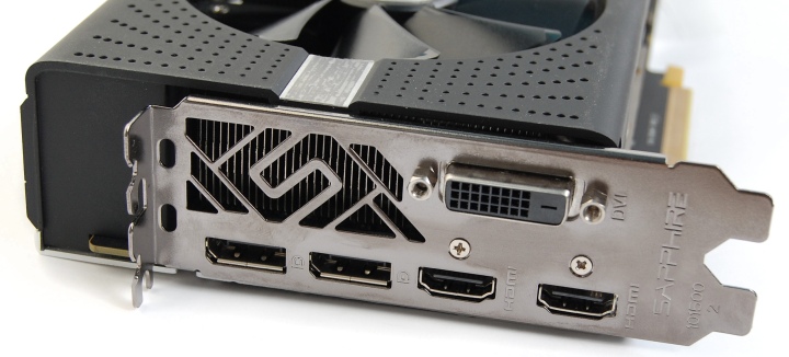 На задней панели пять разъемов для вывода изображения: по два DisplayPort и HDMI, плюс один DVI. Sapphire Nitro специально оснащается парой HDMI для простого и быстрого подключения гарнитуры VR.