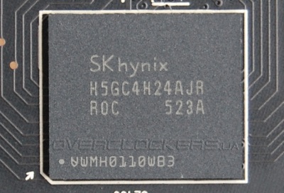 Два гигабайта памяти набраны четырьмя микросхемами SKhynix H5GС4H24AJR R0C.