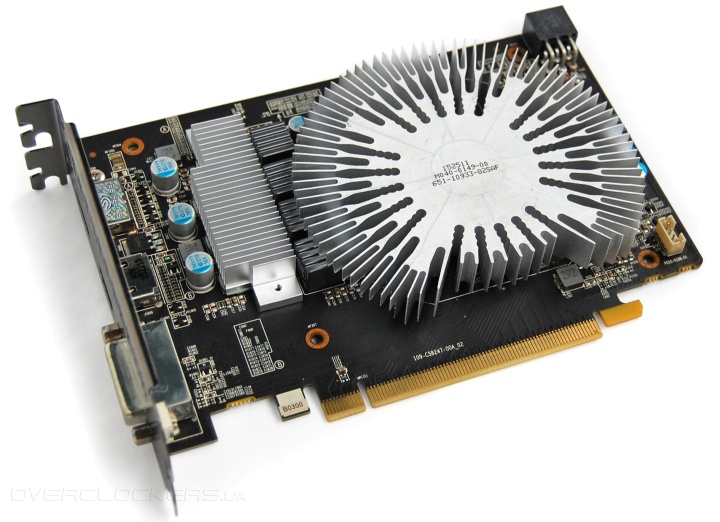 Сама видеокарта выглядит как типичный представитель бюджетного класса — малые размеры, кулер с одним вентилятором и простым радиатором без тепловых трубок.