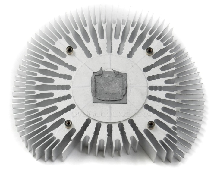 Под кожухом два алюминиевых радиатора. Один охлаждает силовые элементы узла питания. Второй устанавливается на графический чип — у него массивная сердцевина и множество расходящихся во все стороны лепестков. Типовая конструкция для дешевых видеокарт, которая с небольшими изменениями используется почти всеми производителями.