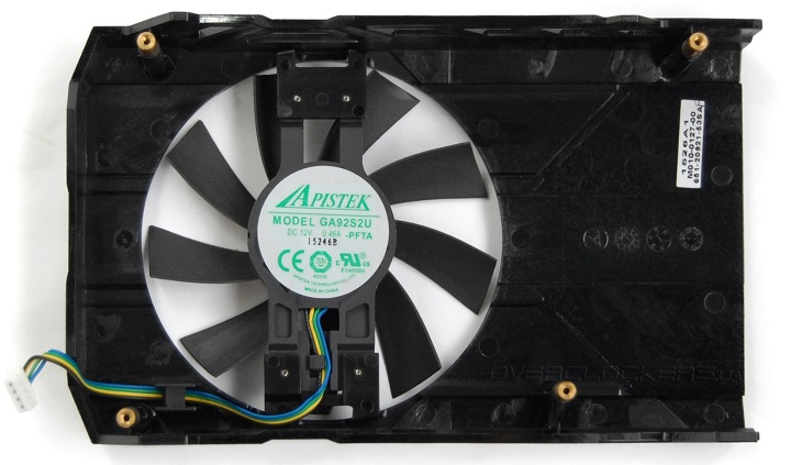 Вентилятор Apistek GA92S2U прикручивается прямо к кожуху. Его диаметр 92 мм, это максимально крупный формат при таких габаритах видеокарты.