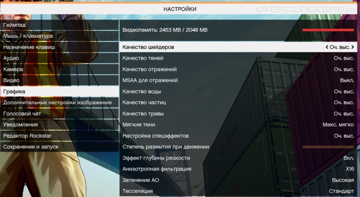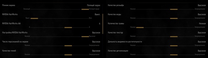 Все параметры графики в положении «Очень высоко» или «Высоко», без переключения к Ultra-уровню там, где это возможно. Дополнительно отключен эффект размытия в движении, а качество тесселяции в самом простом «стандартном» значении. Сглаживание не включалось.