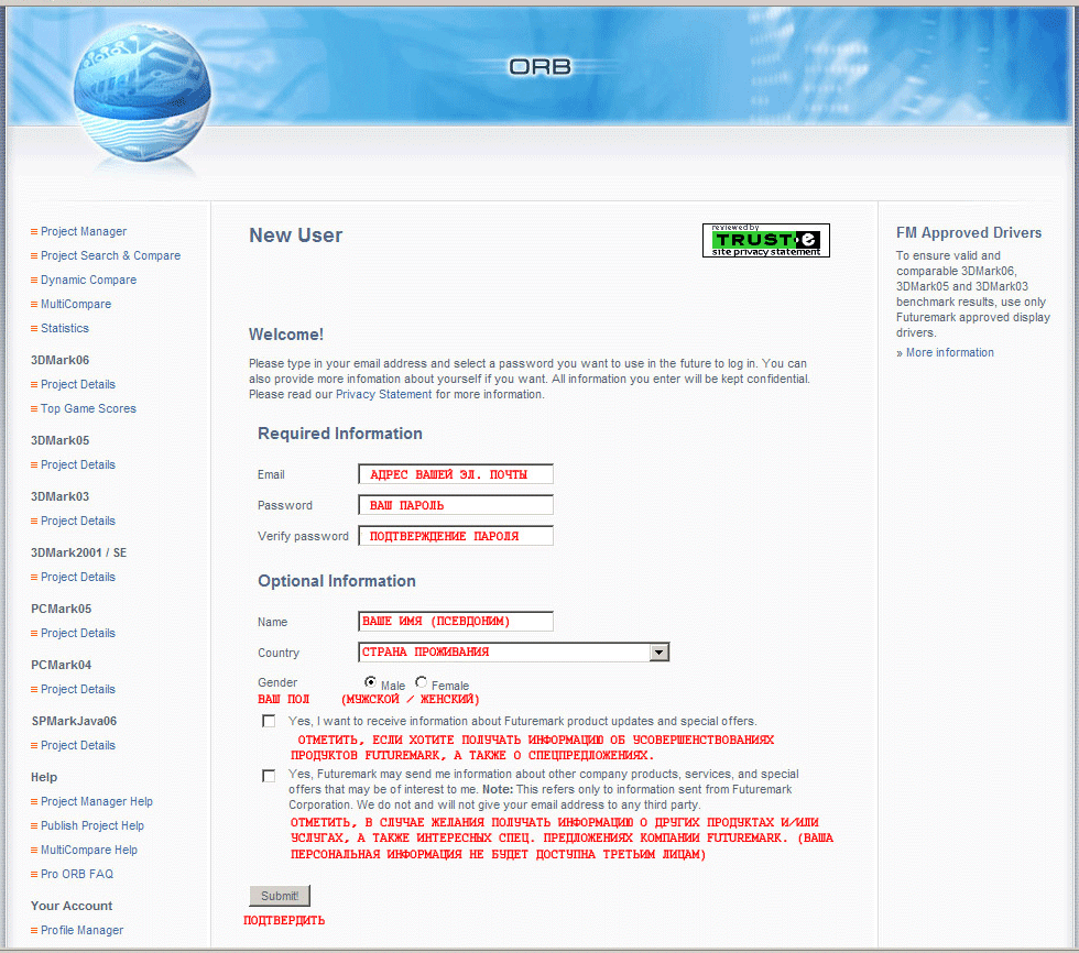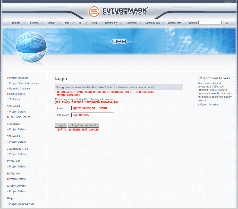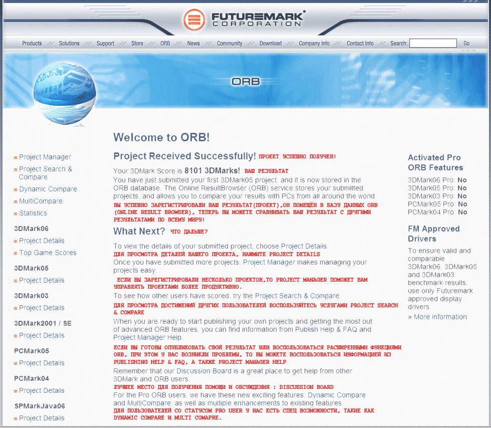 A: Для успешной регистрации на ORB Вам необходимо легально приобрести копию любого из тестовых пакетов серии 3DMark от компании Futuremark.