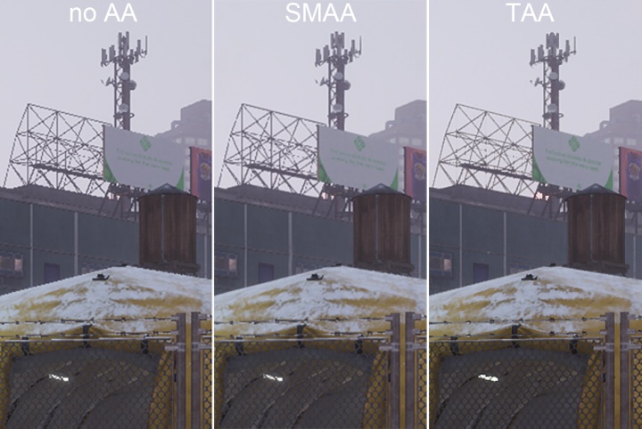 Вопрос сглаживания всегда важен для игрока. Зачастую настройки сглаживания серьезно влияют на общую производительность. Хотя в случае с Tom Clancy's The Division сглаживание не критично для быстродействия, влияние его небольшое.